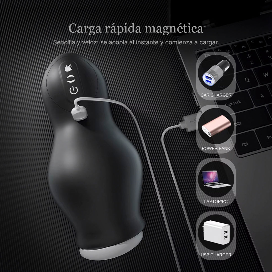 Este succionador está diseñado para imitar el contacto de unos labios expertos, con 7 modos de succión que van desde el roce más suave hasta una presión envolvente. A eso súmale 7 patrones de vibración para un entrenamiento que no se siente como trabajo, sino como recompensa.
